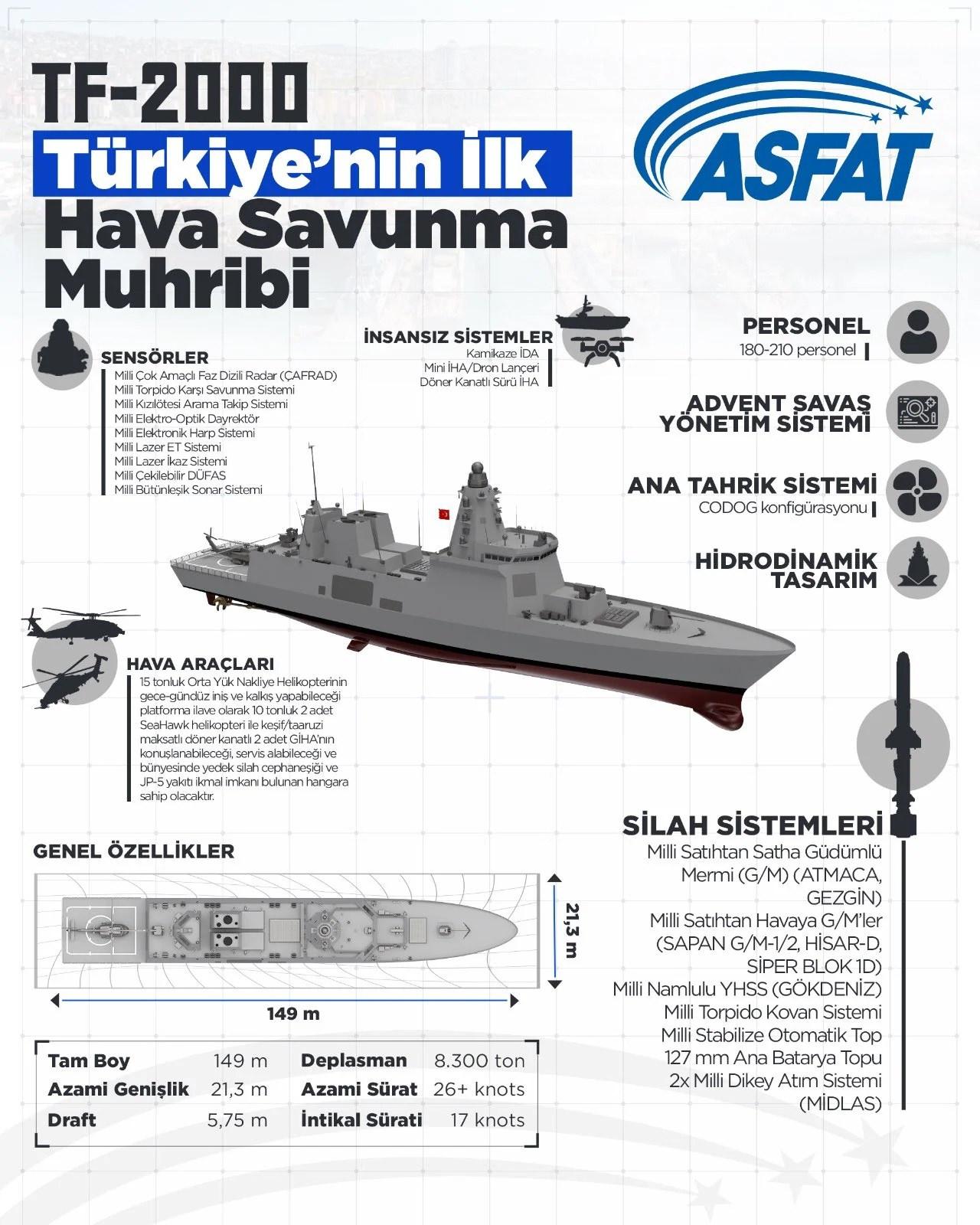TF-2000 programı, Türk Deniz Kuvvetlerini özel hava savunma destroyerleri sınıfıyla donatmak ve nihayetinde sekiz gemiye kadar hizmete sokmak amacıyla 2007 yılında Savunma Sanayi Yürütme Kurulu tarafından onaylanmış 2019 yılında ise detaylı tasarım aşamalarına başlanmıştı.